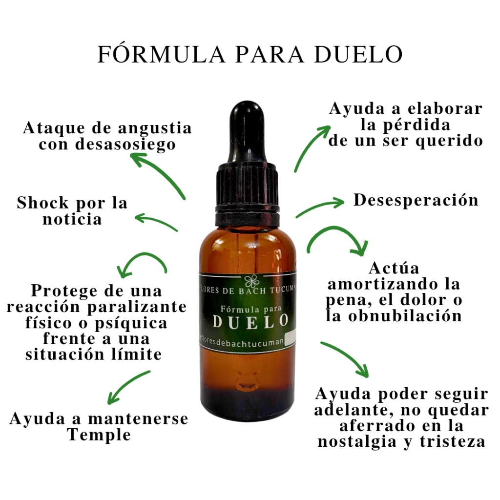 Ésta fórmula está diseñada para ayudarte a transitar la etapa de duelo y pérdida de un ser querido, como poder afrontar el shock de la mala noticia, la angustia, ansiedad, desesperación, desasosiego, tristeza; proteje de una reacción paralizante psíquico o física frente a la situación límite, amortizando la pena, el dolor, la obnubilación, contribuyendo a poder mantenerte temple durante dicha que situación y momento.